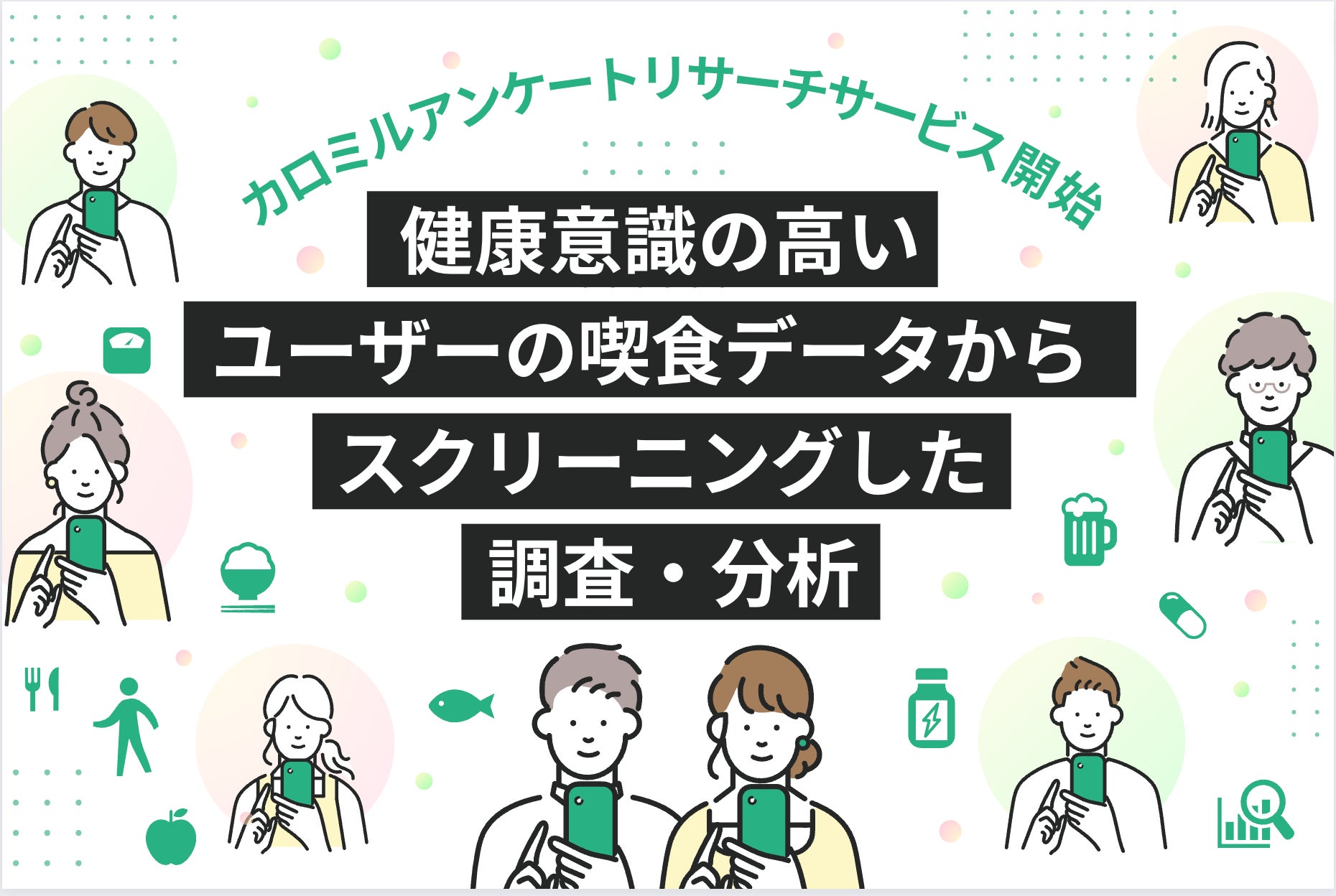 栄養摂取状況や喫食記録状況を含めた調査は、一般的なインターネット調査では調査対象者の自己申告結果が中心となるため、認識と実態が異なる場合が散見され、正しい調査結果が得られないことが課題でした。本サービスは、日々ユーザーが「カロミル」に入力したデータを元にスクリーニングをするため、客観的なエビデンスを元にセグメントを切ることができます。このようなユーザーの日々の生活実態に即したアプローチができるアンケートリサーチサービスでは、調査対象の主観ではない、栄養状態や喫食傾向の実態に即した調査が可能です。