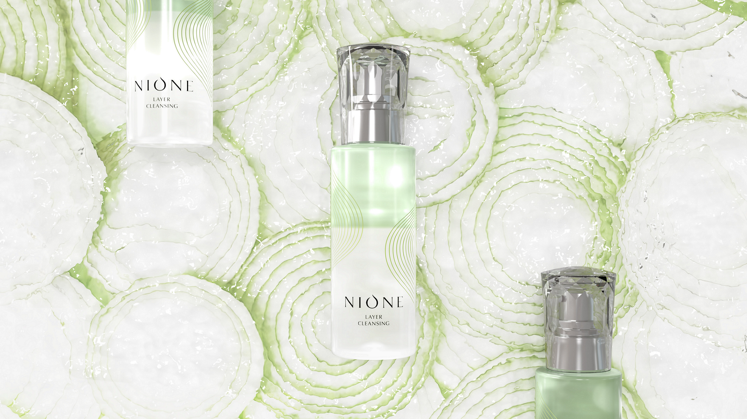 年間約2,000tも廃棄予定のタマネギ(外皮含む)にも、もれなく「ケルセチン」が含有されており、特に淡路島産タマネギ「ケルたま」は通常の1.5倍もの成分量を含んでいるため、美容成分として化粧品の開発に踏み切り、成分抽出など研究・試作の末、『NIONE(ニオーネ)』の完成に至る。