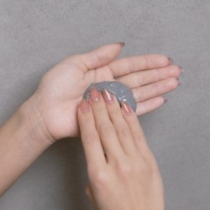 クレンジング適量を手のひらに取り、髪の生え際から上に向かって地肌に馴染ませるようにします。ショート〜ミディアムでピンポン玉1個分、ロングヘアで1.5個分を手のひらに取り、反対の手のひら4指に馴染ませます。