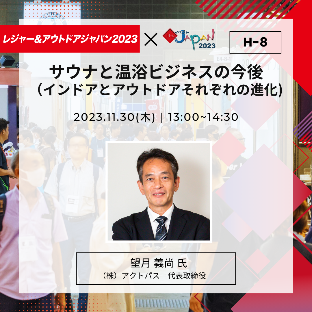 本展では、サウナの販売や運営などレジャー・アウトドア業界の最前線に立つ一流講師陣による専門セミナーを3日間同時開催いたします。今後生き残っていくための経営ノウハウや集客方法、長きにわたる販売実績からみた成功事例など、29本の実践的なセミナーを連日開催。全講演無料にて聴講可能です。本質を知ることで、更に業界への理解が深まり、今後のビジネス参入や拡大のヒントが得られること間違いなしです。