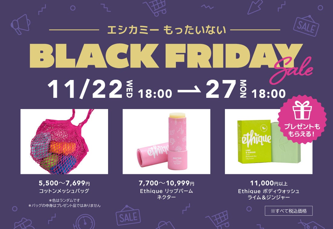 エシカミーもったいないBLACK FRIDAY SALE期間中、お買い上げ金額に応じて、エシカルなアイテムをプレゼントいたします。