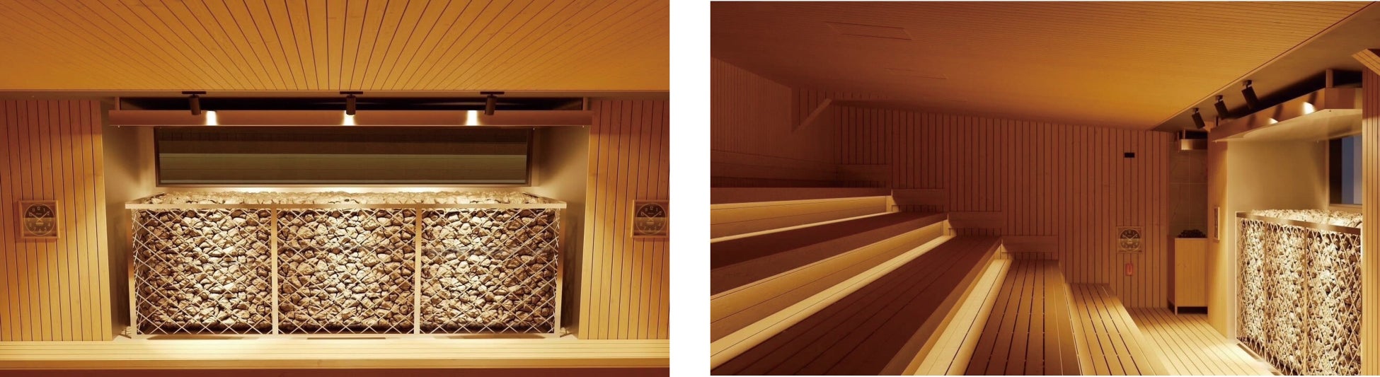開放感のある設計で、収容人数100名と高温(常時100℃程度)サウナ室としては世界最大級※を誇ります。また、ベンチはあぐらでも問題ない奥行きにて設計しており、ゆったり広々としたサウナタイムを、お楽しみ頂けます。