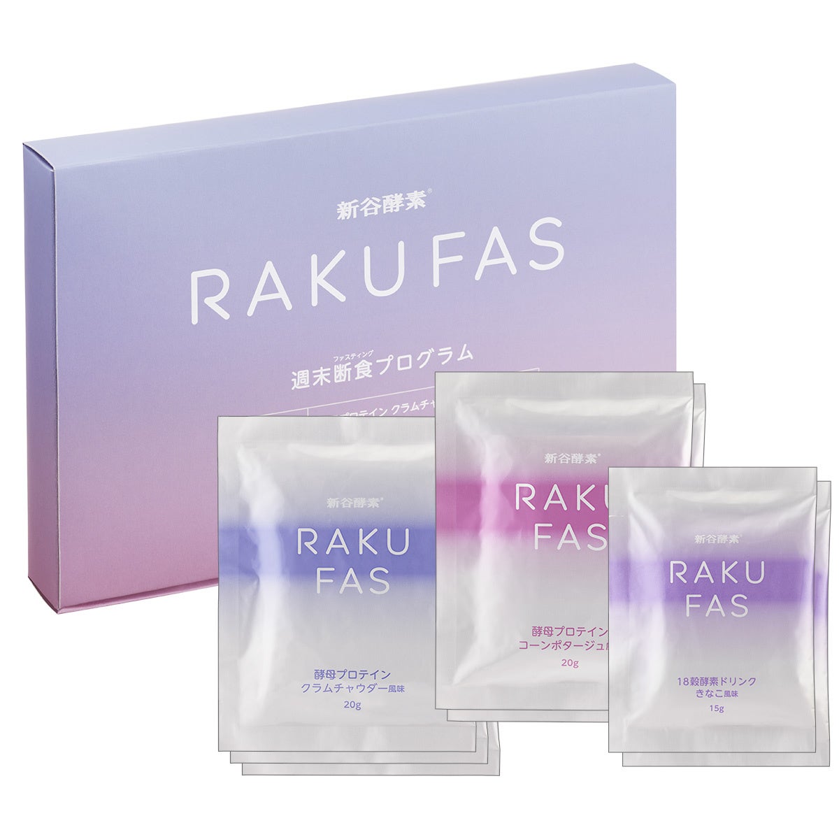週末だけだから、忙しい方でもラクに体験できる。下記の他にも2箱連続3日間や、16 時間ファスティング、平 日の朝食や夕食の置き換えなど、自分に合った使い方で、 日常に手軽にファスティングを取り入れられます。