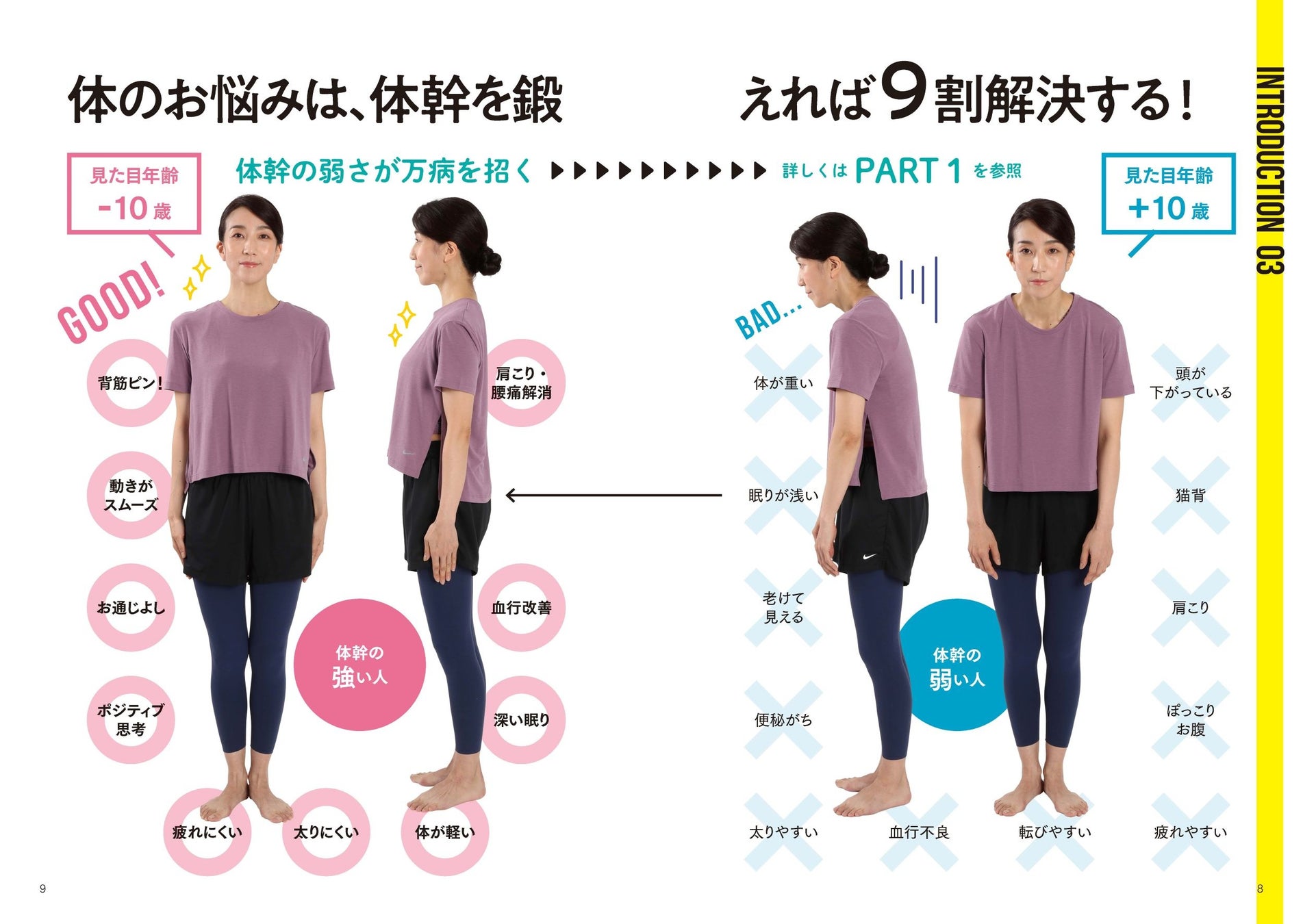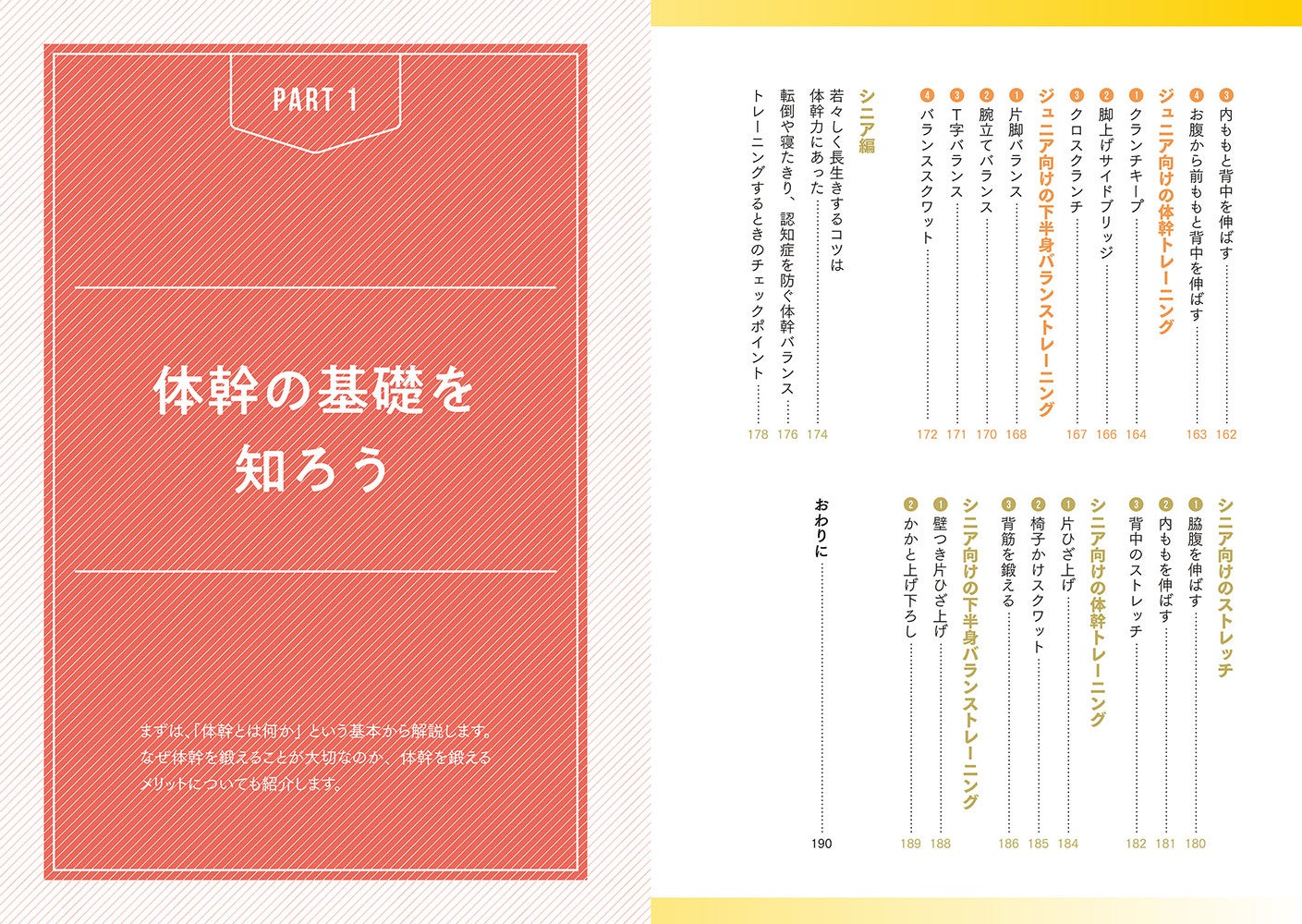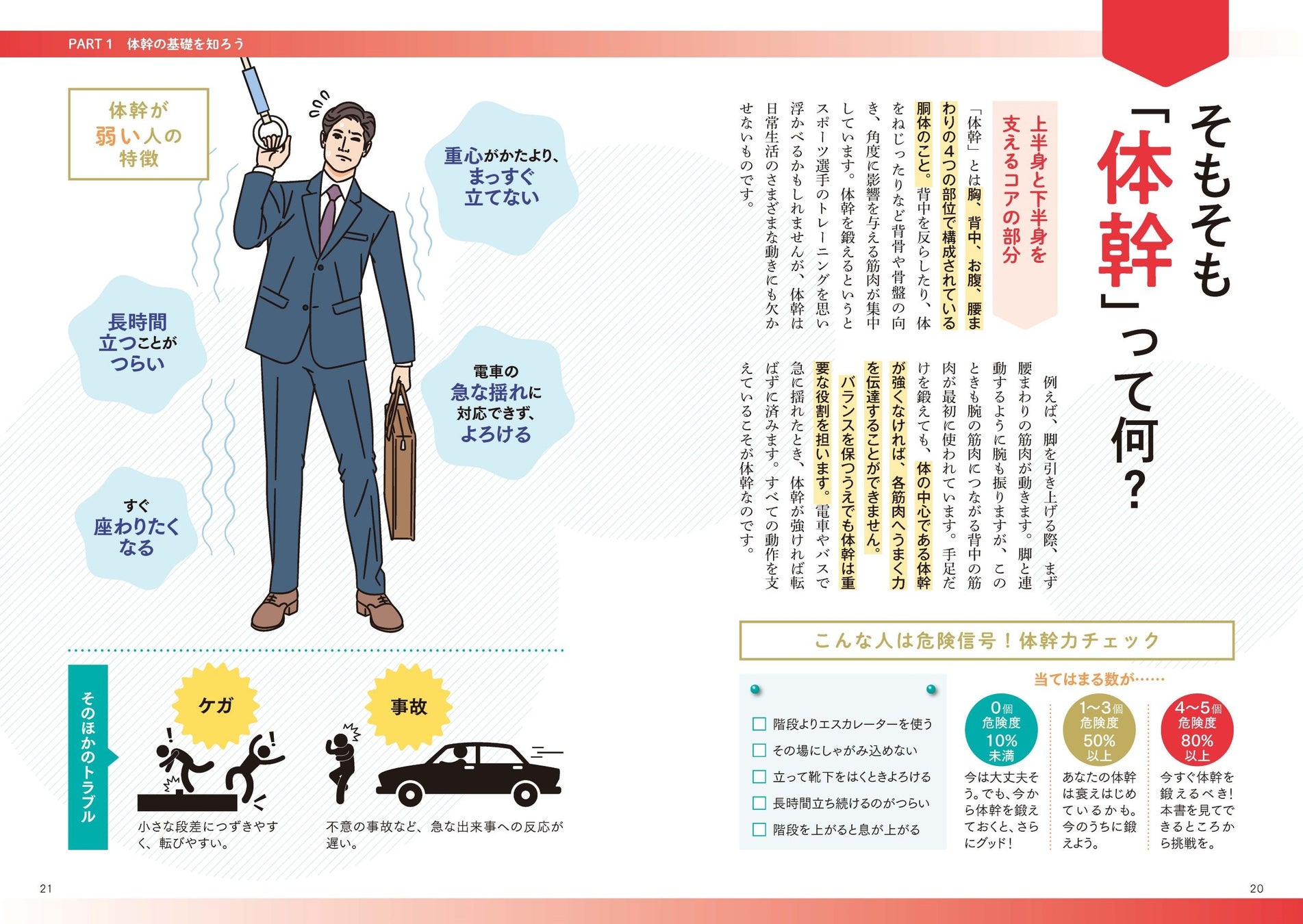 そもそも「体幹」とはなにかという基礎知識から、自宅で簡単に行えるストレッチやトレーニングを厳選して掲載。土台となる下半身の安定性を高め、上半身のバランス力を強化することで最強の体を手に入れる最新メソッドを解説します。