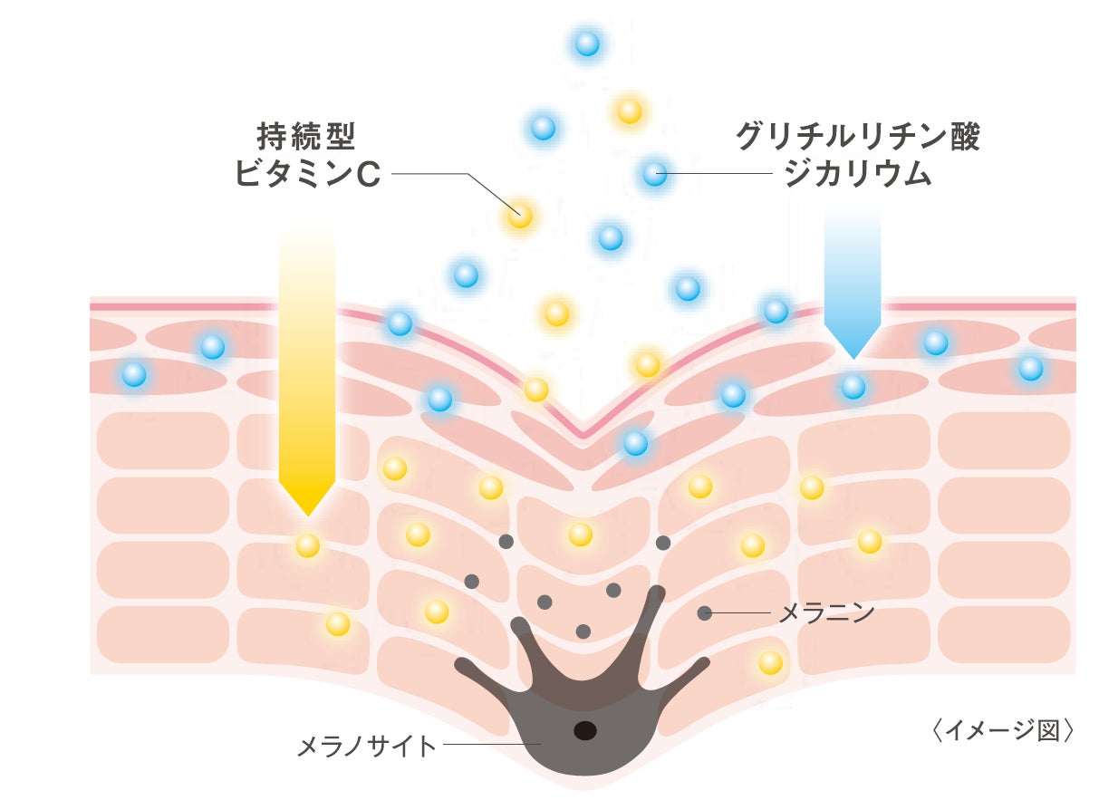 なめらか本舗美白ラインオリジナルの豆乳発酵液※3に加え、美白有効成分として持続型ビタミンC※4と、