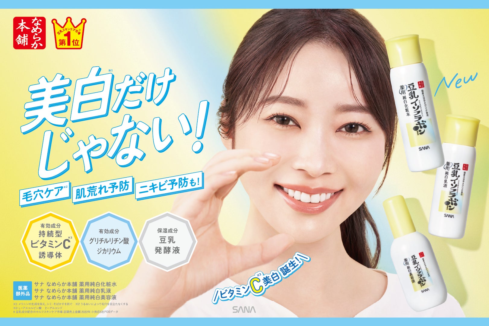 2024年2月20日、ノエビアグループの常盤薬品工業株式会社(本社:東京都港区)は、豆乳のスキンケアブランド『サナ なめらか本舗』から、肌荒れ防止&毛穴ケア※2して透明感のあるお肌に導く「薬用純白化粧水」「薬用純白乳液」「薬用純白美容液」を新発売いたします。◆発売日はメーカー出荷日となります。購入可能日は各店舗により異なります。2月7日より@cosme TOKYOにて先行発売いたします。
