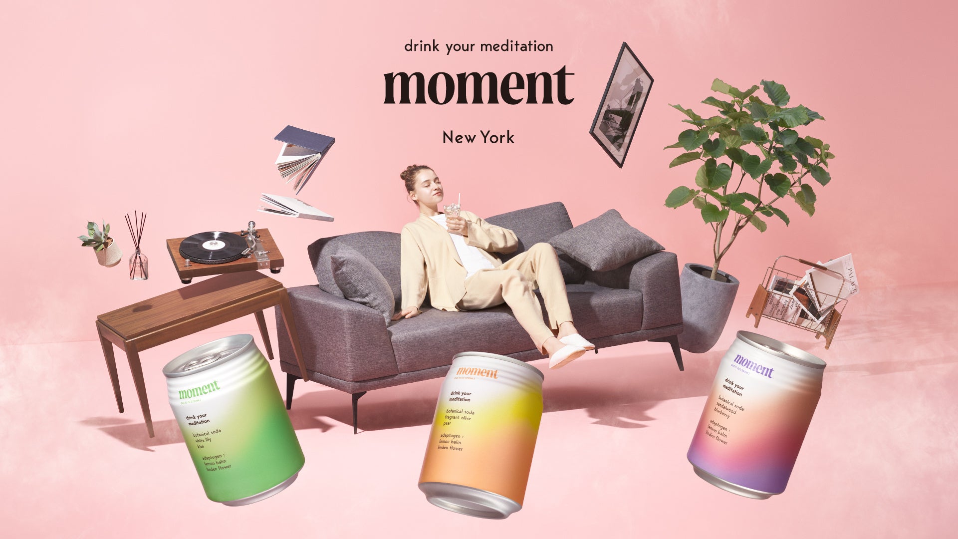 「moment」はニューヨーク生まれのリラクゼーションドリンク。ハーブが心地よく香り、植物由来の「アダプトゲン」が心をゆるめて整える、ボタニカルソーダです。飲むだけで、まるで“瞑想”のようなリラックスタイムを過ごすことができます。眠れない夜や、ちょっとひと息つきたい時に、おすすめです。