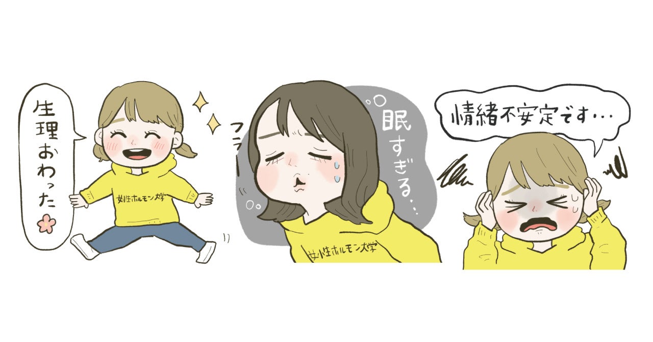 (「生理きた」「生理おわった」「神!」「その発言、昭和ー!」「鉄分大事」「大丈夫?我慢してない?」「眠すぎる」「情緒不安定です…」)