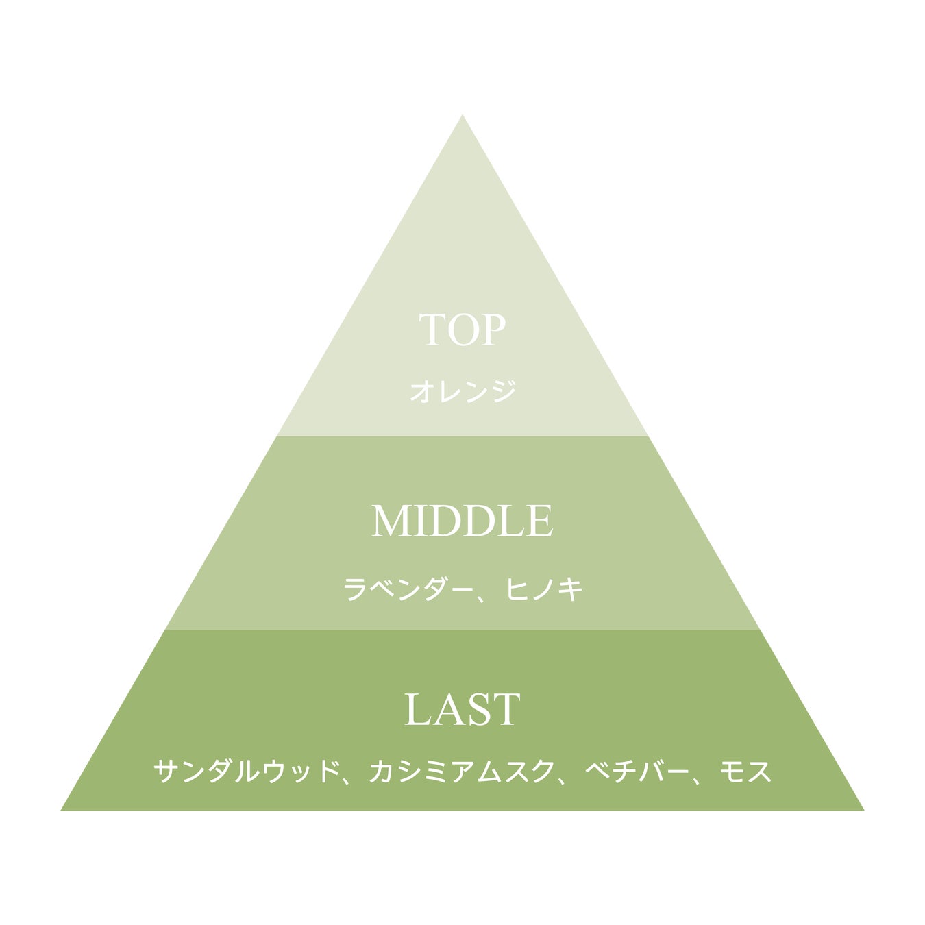 阿蘇の大自然を感じる阿蘇産ヒノキ精油の香りをベースに、少しクセになるスモーキーな香りが特徴のウッディー調の香りです。
