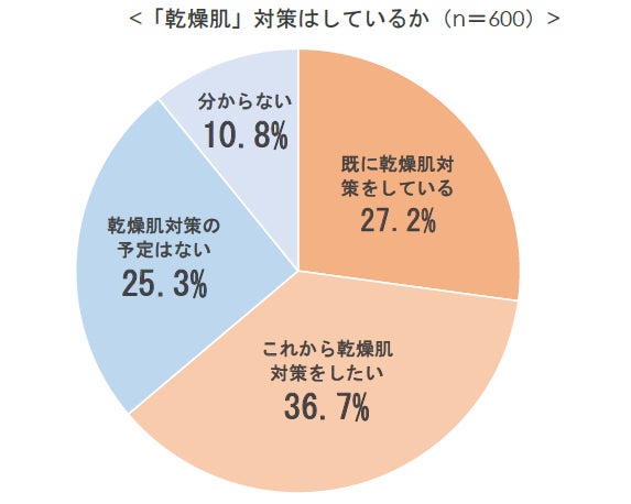 また、36.7%が「乾燥肌」対策はこれから行いたいと考えており、昨年より肌の悩みを感じている人ほど「乾燥肌」対策に関心が高い結果となった