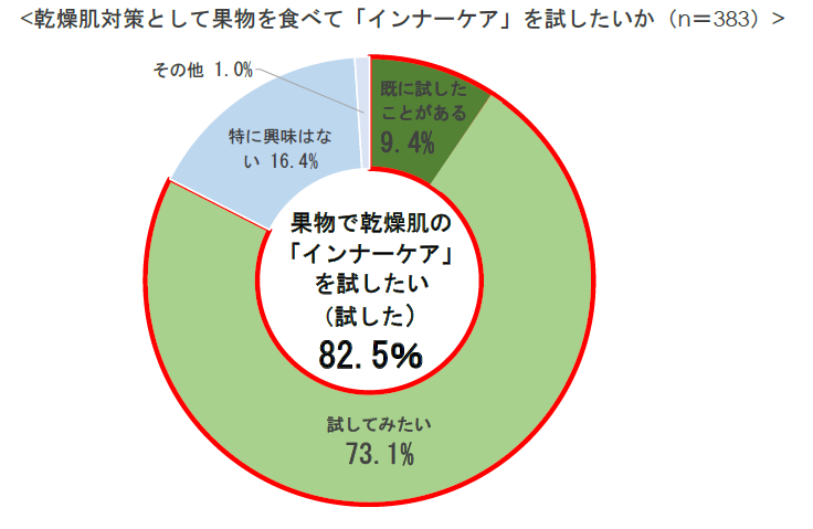 ■8割強が果物を食べて乾燥肌の「インナーケア」を試したいと回答。
