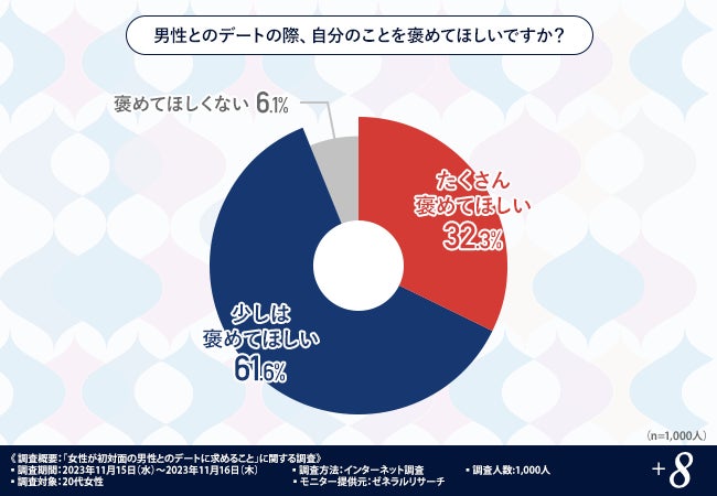 9割以上の女性がデート中に男性から褒められたいと感じていることがわかりました。