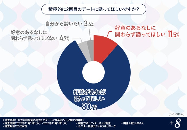 「積極的に2回目のデートに誘ってほしいですか?」と質問したところ、以下のような回答結果になりました。