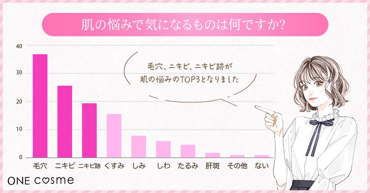 20代のONEcosmeユーザーのほとんどが、美容の悩みを抱えていることが判明。毛穴やニキビなどの悩みの対策として、化粧品でカバーしている人が多いという結果に。