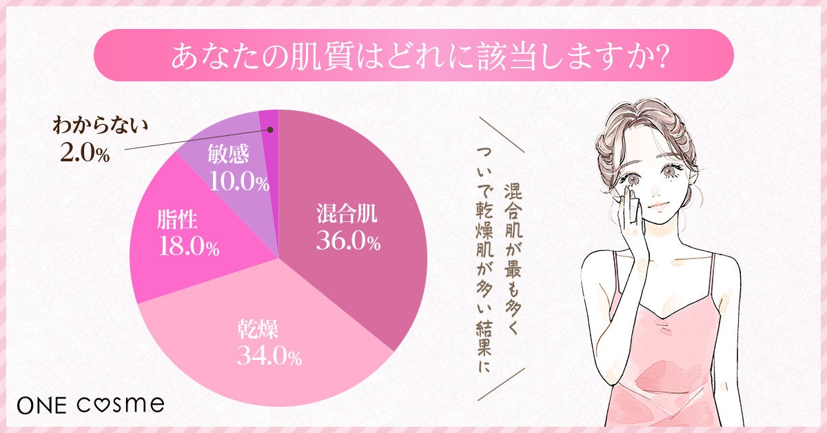 20代のONEcosmeユーザーに肌タイプを伺ったところ、最も多いのは混合肌でした。次に多いのが乾燥肌です。