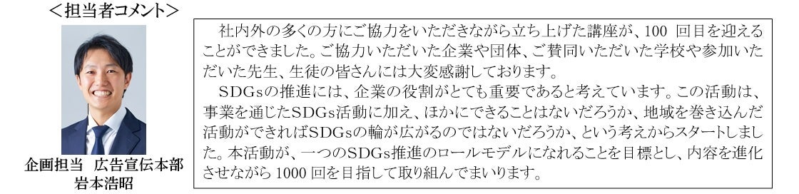 この講座を通じて生徒さん一人ひとりが、より良い未来を創るためにSDGsを実践できるきっかけ作りを、推進してまいります。