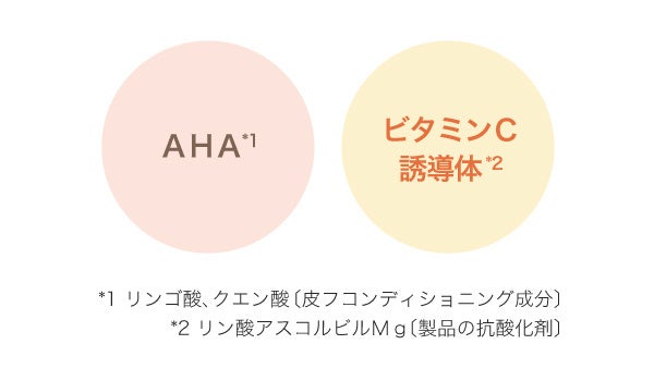 *3 リンゴ酸、クエン酸〔皮フコンディショニング成分〕 *4 リン酸アスコルビルMg〔製品の抗酸化剤〕 *5 古い角質