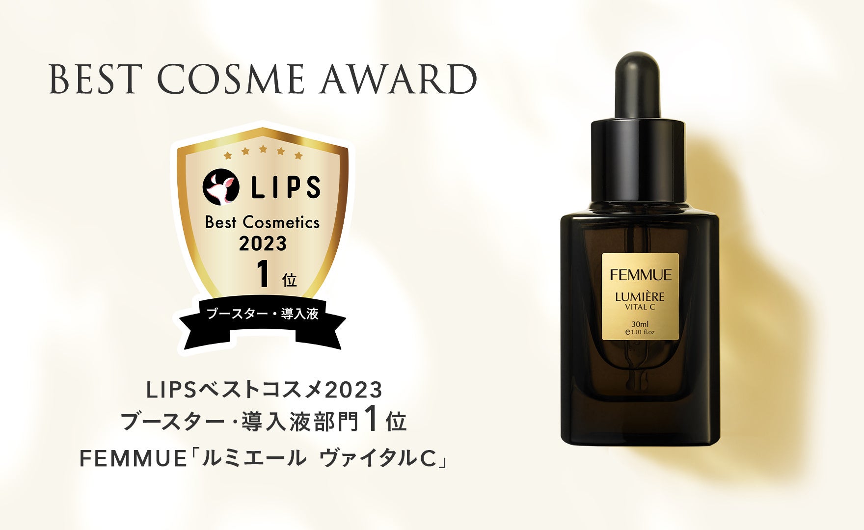 アプリダウンロード数1,100万を誇る美容プラットフォーム「LIPS」にて、2018年2月に発売されたビタミンC誘導体*1を配合し、肌のキメを整えてクリア肌*2へ導くブランド人気No.1*導入美容液「ルミエール ヴァイタルC」がLIPSベストコスメ2023 ブースター・美容液部門1位を受賞しました。