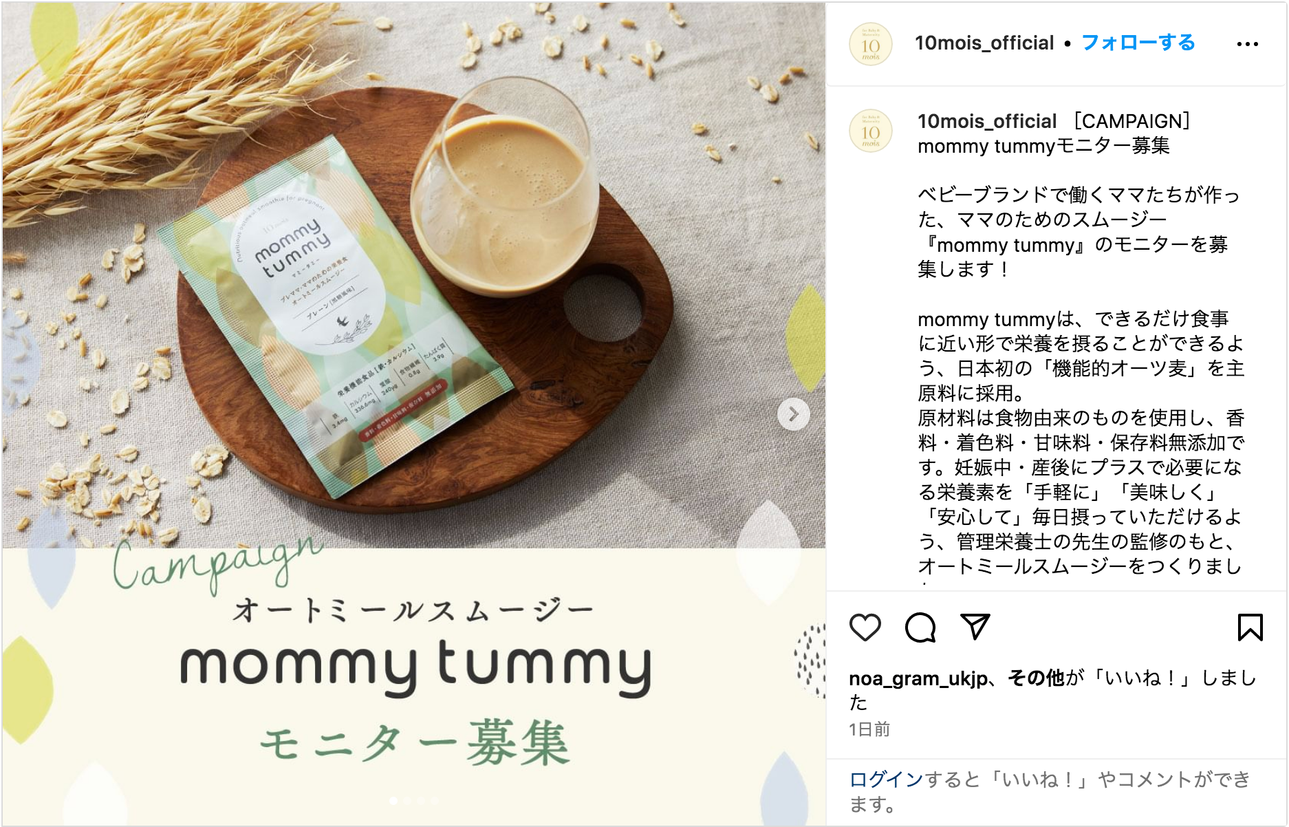 新商品「mommy tummy」を多くの人にお試しいただくために、12月6日(水)よりモニター募集を開始しました。締め切りは12月19日(火)23:59まで。10mois公式Instagramの下記投稿(https://www.instagram.com/p/C0gTt1PrAb_/)に「いいね」をしていただき、応募フォーム( https://forms.gle/hiKit42pLey8sDxP9 )よりご応募をお願いいたします。