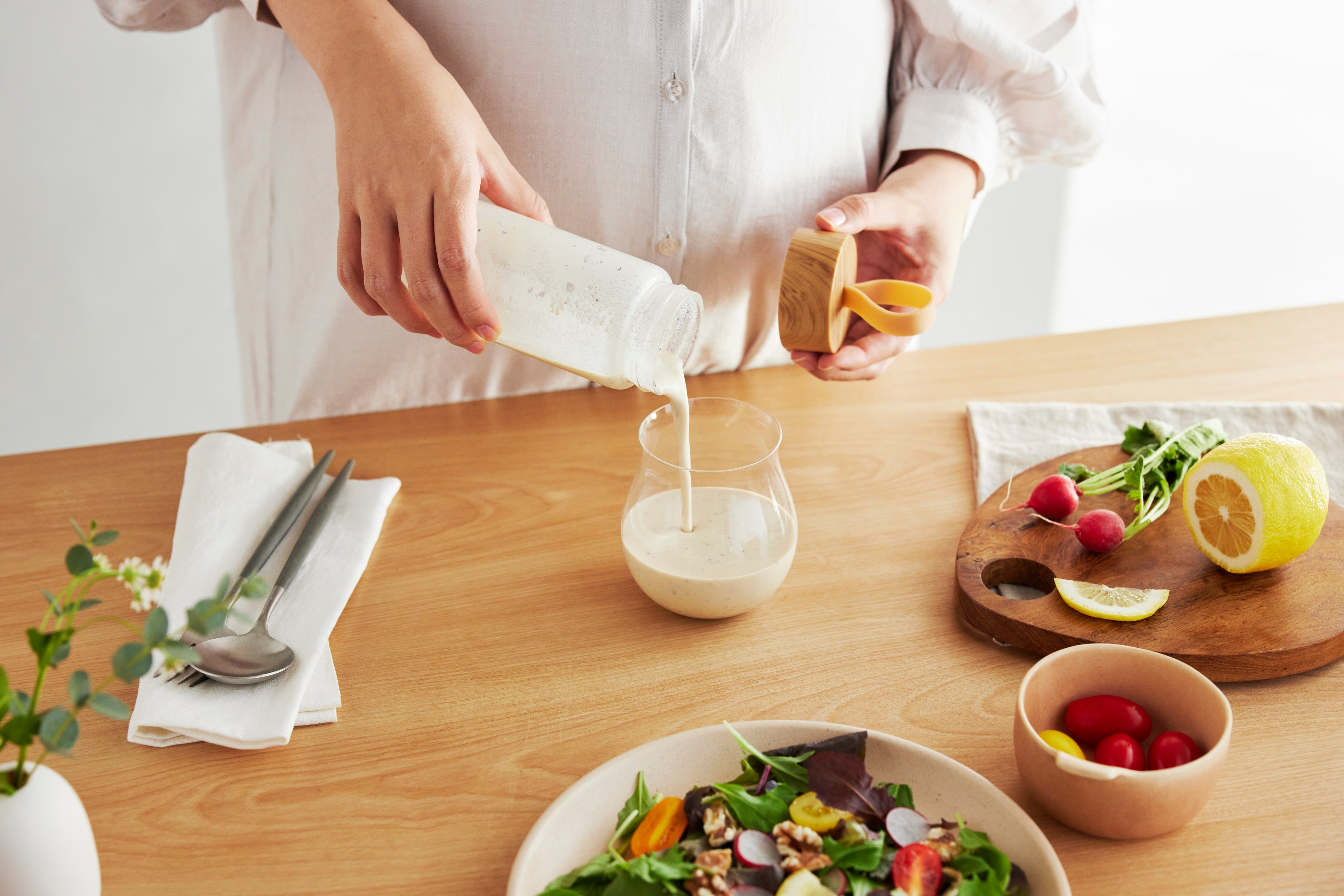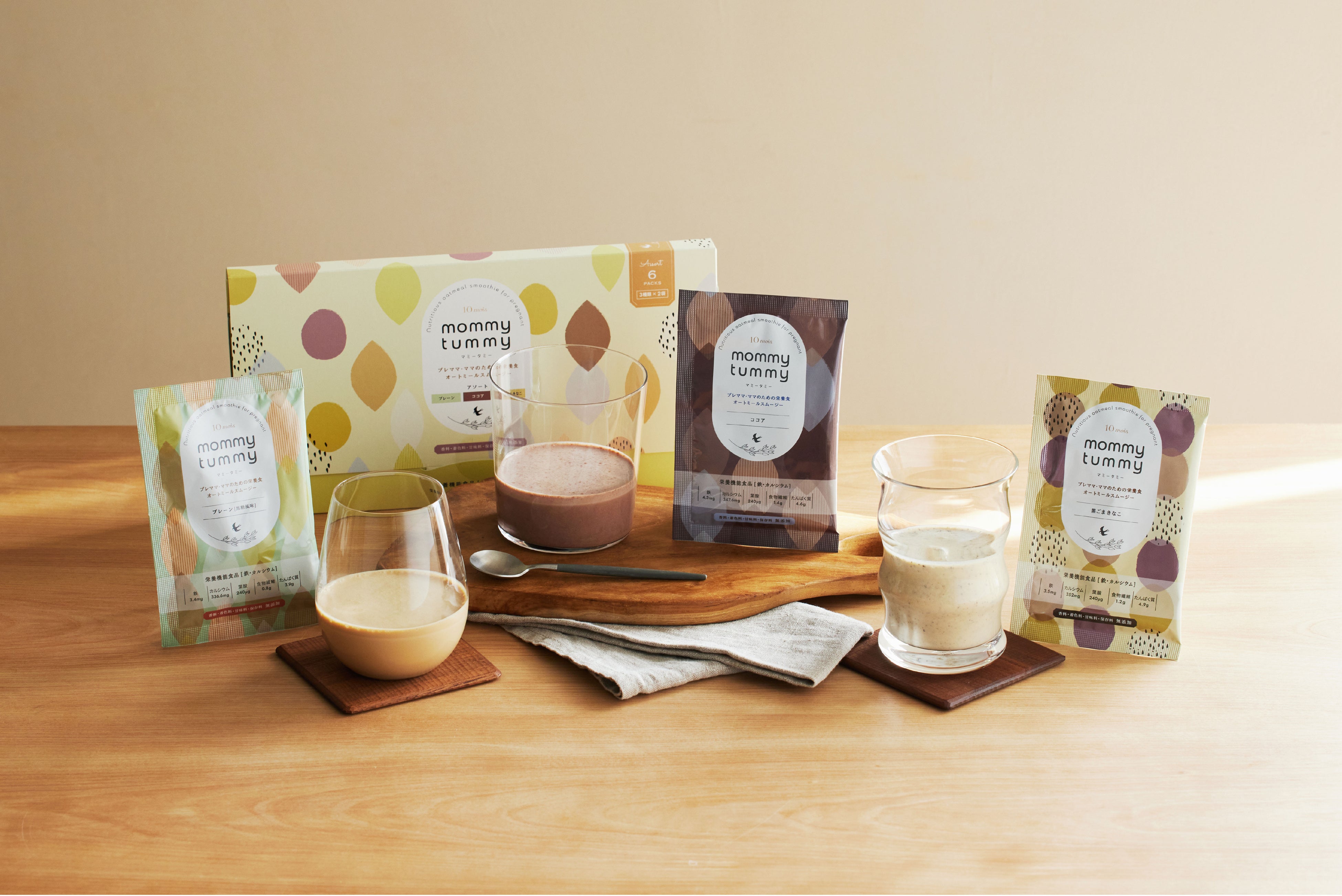 ミルク由来のカルシウムやたんぱく質、大豆由来の鉄やパン酵母に葉酸を取り込ませた葉酸酵母など、原材料は食物由来のものを使用することで、美味しく、安心して栄養を摂取していただけます。そして、妊娠中や産後にプラスで必要になる栄養素を、日々の生活の中で手軽に、美味しく、安心して摂ってもらいたい。その思いから、無添加にこだわって作りました。妥協せず試行錯誤を繰り返し、自然由来の原料を使用しながらも鉄・カルシウム・葉酸・タンパク質などの栄養素を補給でき、美味しく飲めるスムージーが完成しました。