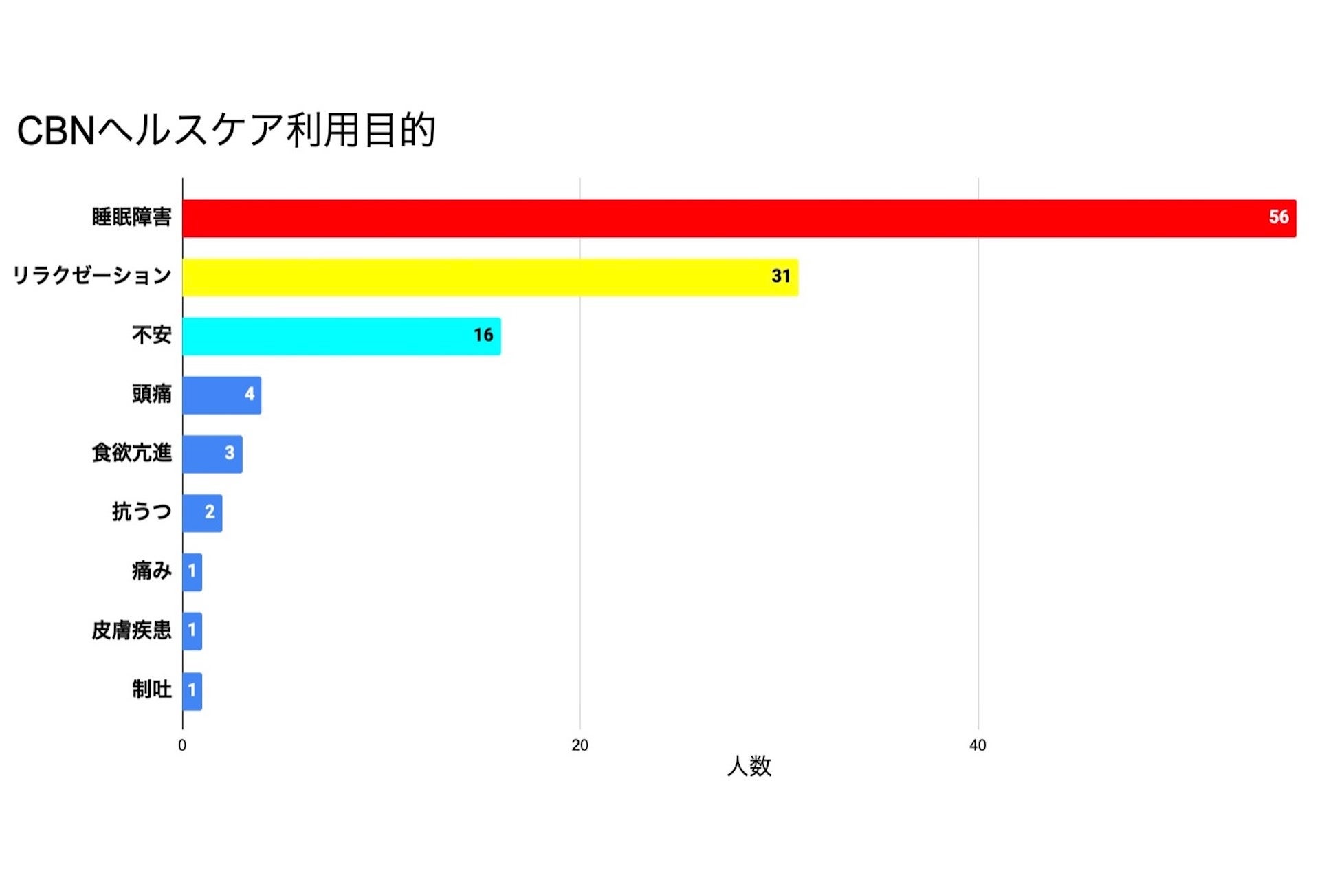 まとめ:本調査は日本国内におけるCBN使用実態に関する初の横断調査であり、使用者の多くがヘルスケア目的で使用していることが明らかになりました。安全性に関しては一部のユーザーで軽度の望まない効果が認められるものの、医療機関へ加療を要するほどの問題は生じていない実態が示されました。