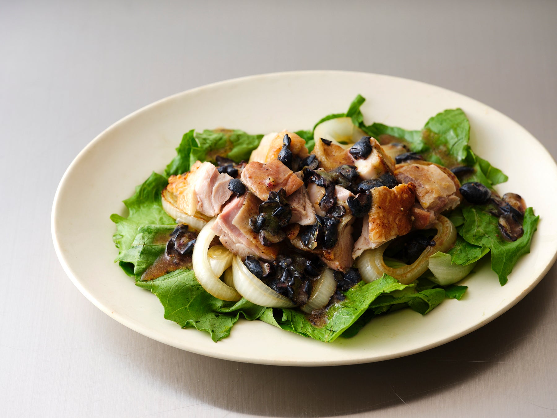 鶏胸肉と焼きまいたけのゆずこしょうあえ