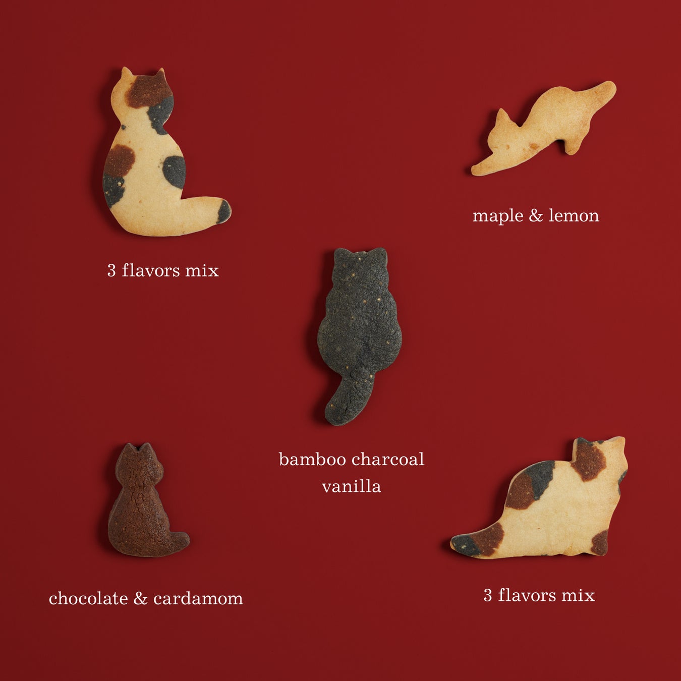 フレーバー:白猫 (プレーン)、茶猫(ココア風味)、黒猫(竹炭パウダー)、三毛猫(プレーン&ココア風味&竹炭パウダー)