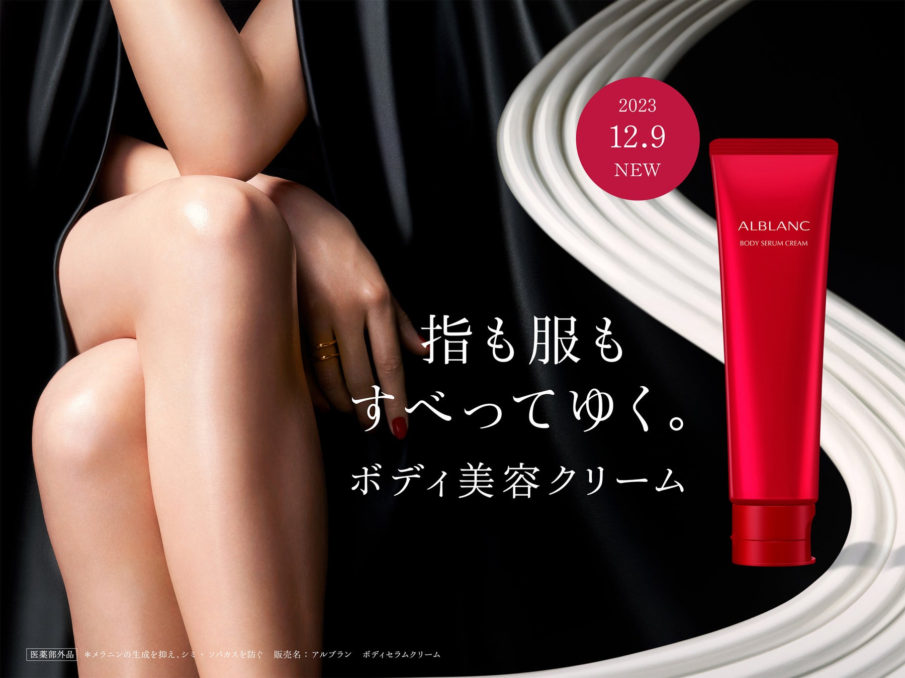 2004年の誕生以来「潤いに満ちた透明感ある明るい肌」を理想とし、“人が気づく美しさ”にこだわってきた「ALBLANC(アルブラン)」から、シミ予防*ができ、潤って透明感のある美しい素肌に導くボディクリーム『アルブラン ボディセラムクリーム』(医薬部外品)を、2023年12月9日(土)より発売いたします。