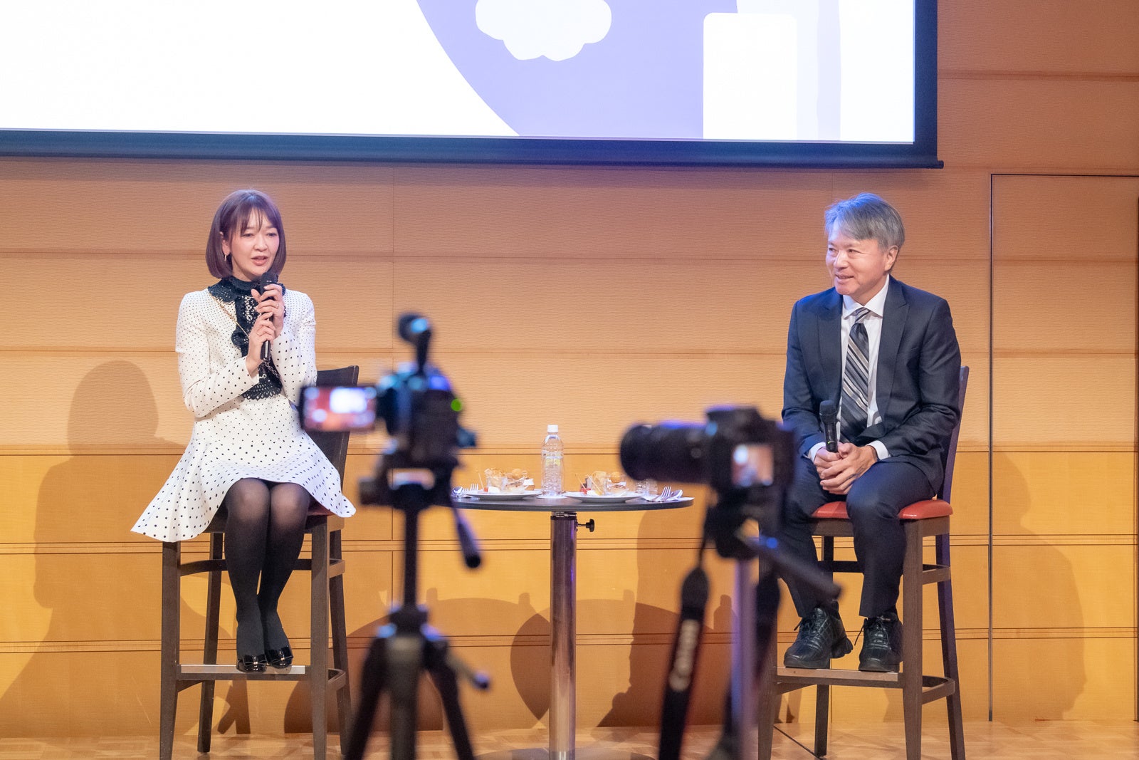 窪田製薬ホールディングス株式会社(本社:東京都港区、以下「当社」)は、当社が推進するZERO Diopter Project*のキックオフセレモニーを12月6日に開催しました。本セレモニーは、東京アメリカンクラブで行われ、約80名の起業家や企業の健康経営担当者、コミュニティ運営者などが参加しました。トークセッションには、ソニーコンピュータサイエンス研究所上級研究員で脳科学者の茂木健一郎氏、品川女子学院理事長の漆紫穂子氏、ファシリテーターとして瀧口友理奈アナウンサーをお招きし、品川女子学院でのアンケートの内容や近視に関するディスカッションを行いました。また、ご来場いただいたお客様からの質問を受け付ける「近視の相談室」も設け、当社社長で眼科医の窪田良と、同じく眼科医で医療法人社団英和会の主任執刀医である佐藤香先生が、その場で会場からの質問に回答しました。