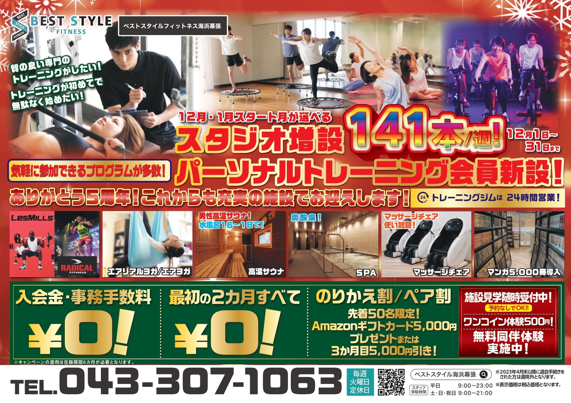 ベストスタイルフィットネス海浜幕張は「自分にとっての”BEST”を叶える」をコンセプトに、有酸素マシン・ウェイトマシン・フリーウェイト・スタジオ(常温、暗闇、ホット)・スパ等を擁した総合型フィットネスクラブです。