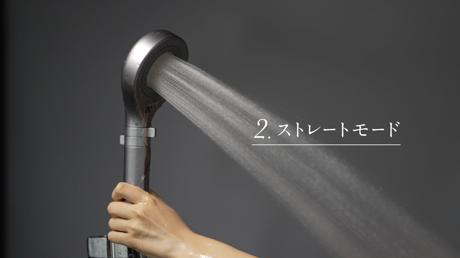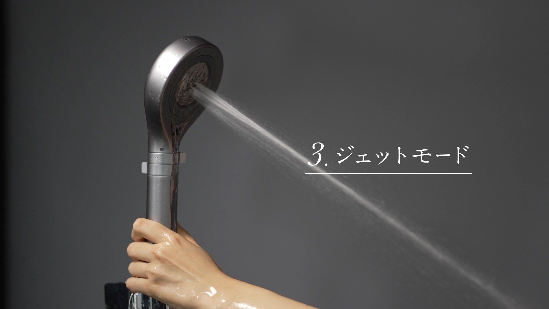 適度な水圧と気泡を兼ね備えたストレートモード。最も気泡が多く、包み込むように優しいミストモード。ミストモードの状態でシャワーを浴槽に入れると“シルキーバス”に。なめらかなナノバブルが全身を優しく包み込みます。そして、最も水圧が強いジェットモード。頭皮に適度な刺激を与えたり、口腔ケアや歯間洗浄も可能です。