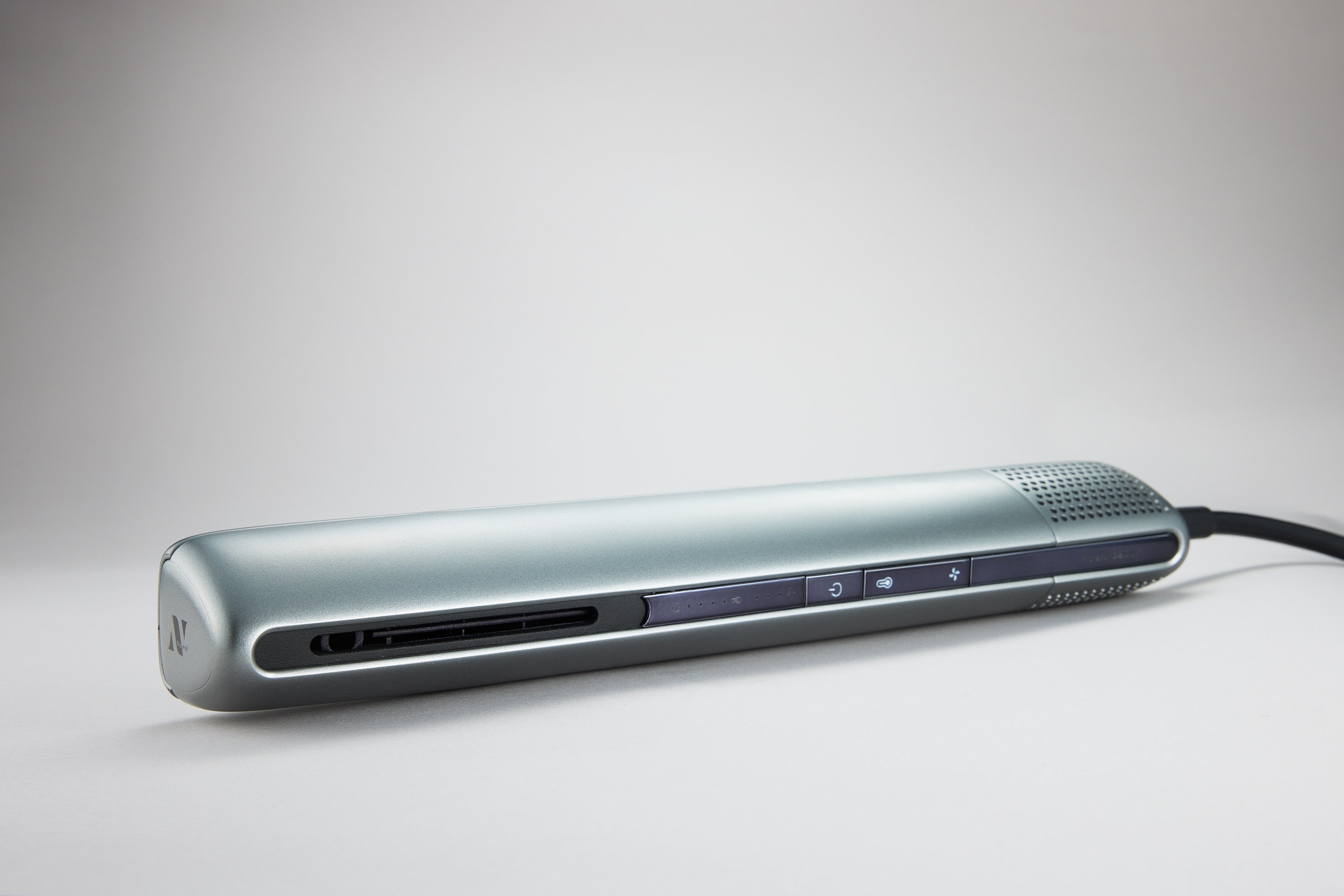 ヘアドライヤーと髪の理想的な距離(約20㎝)を無理なく保てるストレートフォルム。無理に腕を曲げることなく、理想的な距離と方向から風を当てることが可能です。本体の重さも驚きの330g。お客様に寄り添えるよう、長時間のヘアドライでも腕が疲れにくい形を探求し、生まれた形状です。