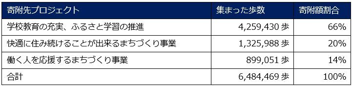 会社全体で合計6,484,469歩を歩いて、歩数から算出した金額の寄附が、石川県珠洲市に対して行われます。