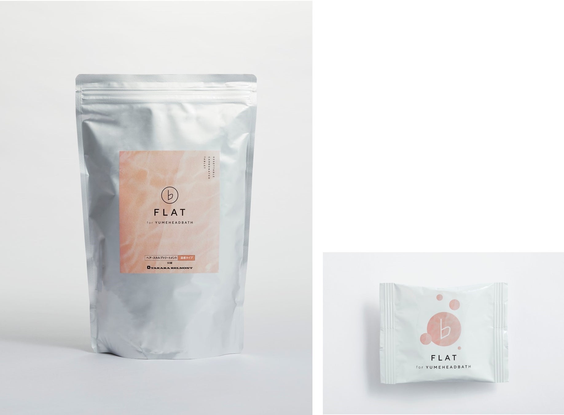 この度発売した「♭(フラット)for YUME HEADBATH」は、頭浸浴を実現するシャンプーアクセサリー「YUME HEADBATH(ユメ ヘッドバス)」にセットし、少しずつお湯に溶かしながら使用する頭浸浴用の炭酸タブレットです。温かみ感じるジンジャーオレンジとアロマハーブのやさしい香りに包まれながら、髪・頭皮をじんわり保湿する新処方で、頭浸浴のリッラクスタイムをアップ デートします。
