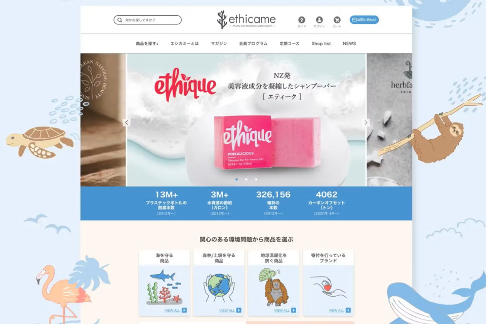 2019年からサステナブルなビューティーバーブランド「Ethique(エティーク)」の販売を開始し、独自の基準に沿った環境・社会・人に優しい製品を取り扱うECサイト「ethicame(エシカミー)」をオープン。