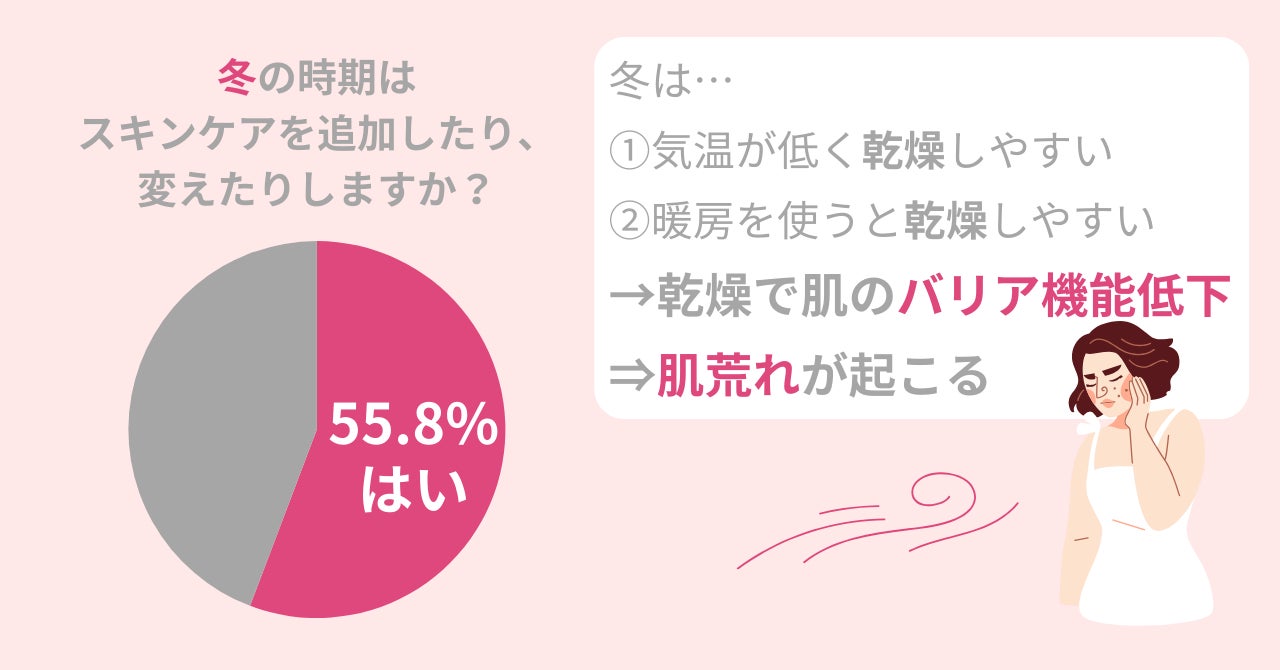 55.8%の女性が冬の時期はスキンケアを追加したり、変えたりする