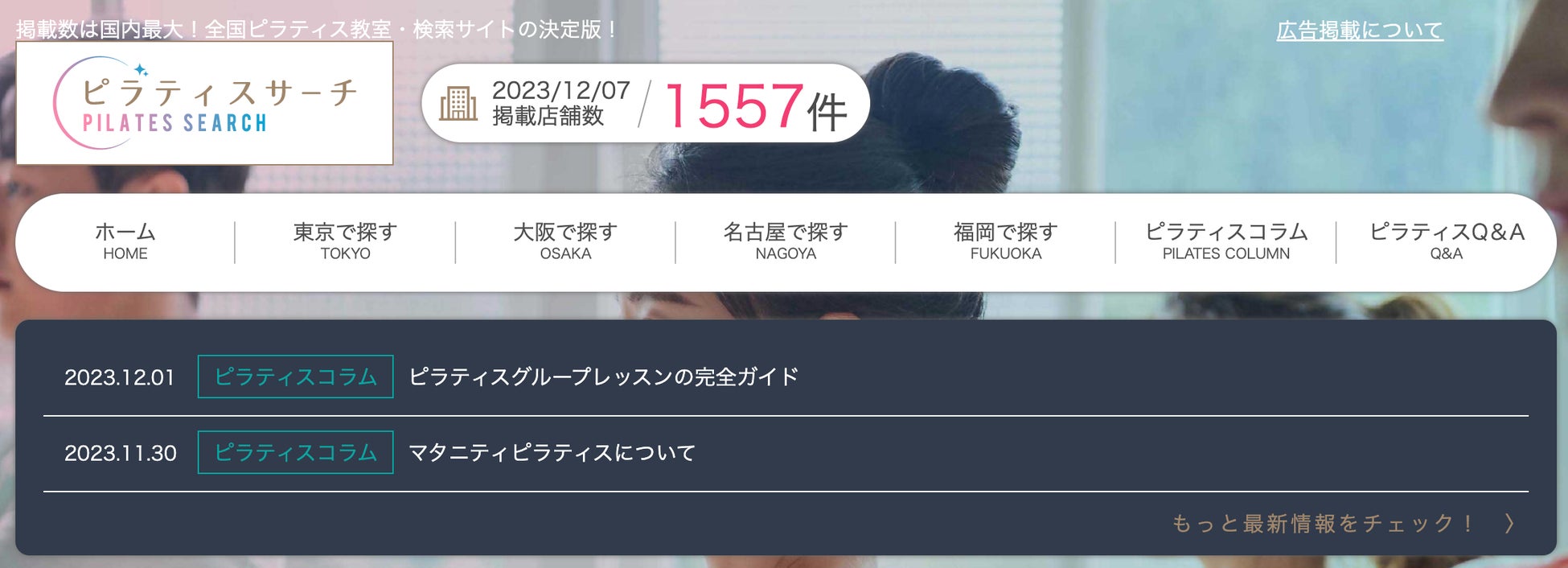 この度『ピラティスサーチ』は全国のピラティススタジオ掲載店舗数が《1500店舗》を突破し、より一層ユーザー様が自分にぴったりのスタジオを見つけるのに役立ち、理想のピラティススタジオを簡単に見つける事が可能となりました。