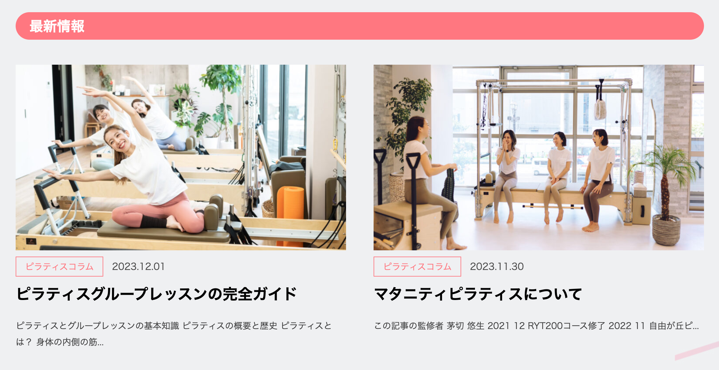 ピラティスの最新トレンドや各スタジオのイベント情報、ピラティスに関する知識や知りたい情報などピラティスのインストラクター監修の元、ユーザー様が求める情報を日々提供しております。
