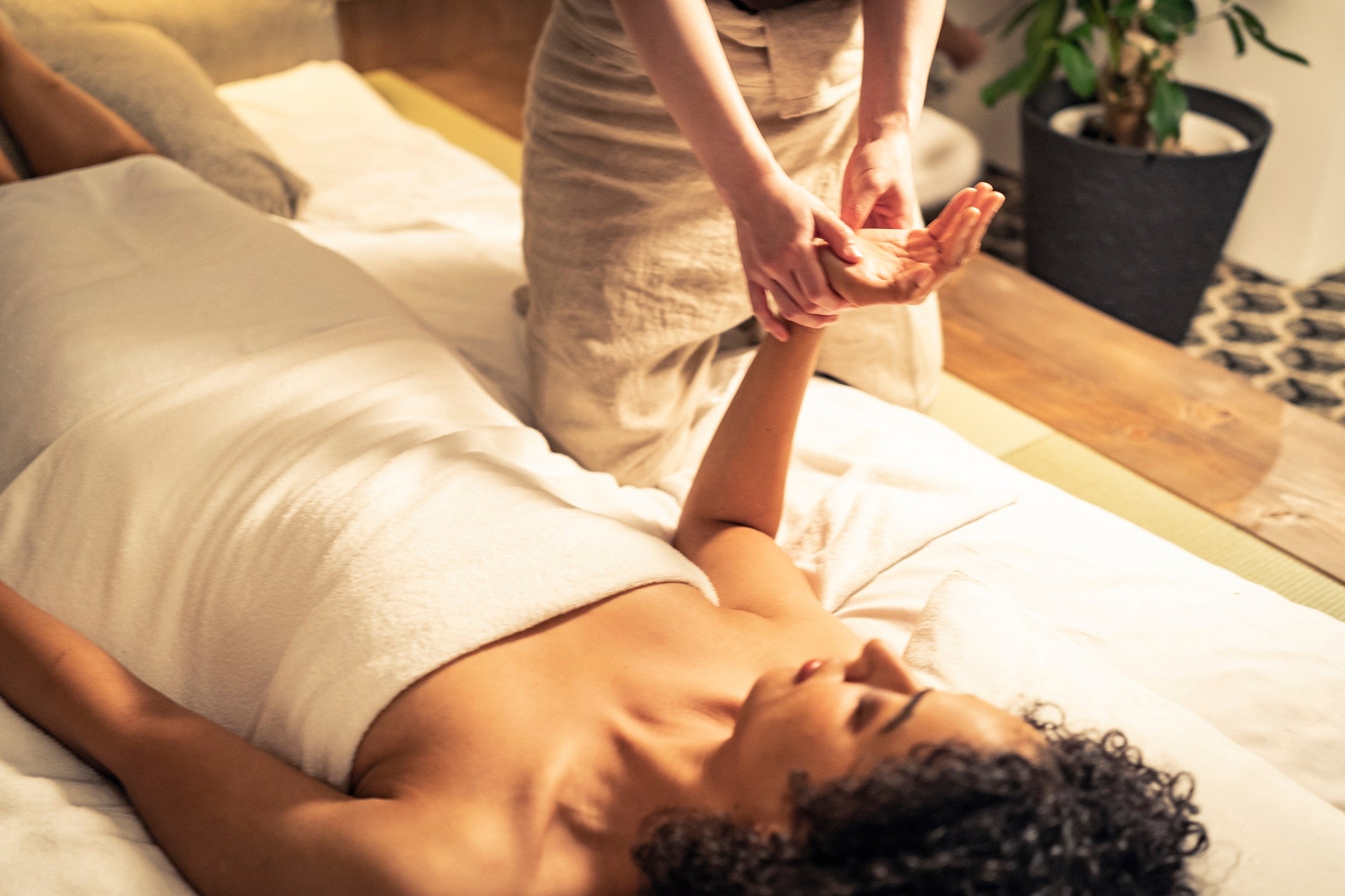 “人のカラダを癒す”、“人の手の温かさを伝える”、という観点から、ナチュラルハンド(素手)にこだわりました。手の温かみが心身の緊張を解き、アロマオイルでは体験できない、より深いリラクゼーション効果を生み出すことで、自律神経やホルモンのバランスが整い、内臓機能の向上にも役立ちます。ストレッチや指圧要素を加えたお客様に合わせたパーソナルの施術が可能です。