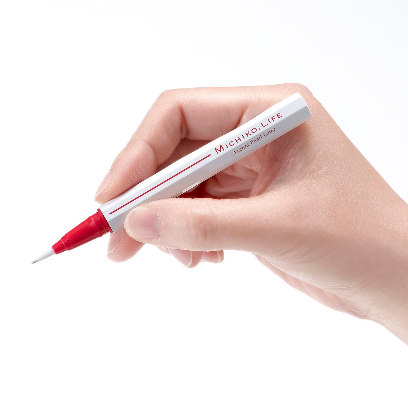 年齢を重ねるにつれて、まぶたのたるみやくすみ(影)が目立ち始め、小さくぼやけた印象になってしまい、実年齢よりも老けて見える…そんな悩み多き大人の目元をカバーしながらも、上品に輝かせるアイテムがあればとの想いから、“大人のパールライナー”を開発しました。「MICHIKO.LIFE アクセントパールライナー」なら、「艶めき」×「煌めき」2種類のパールが角度によってさりげなく輝き、顔全体をイキイキとした印象にしてくれます。仕上がりだけでなく、持ちや描きやすさにもこだわって開発しました。