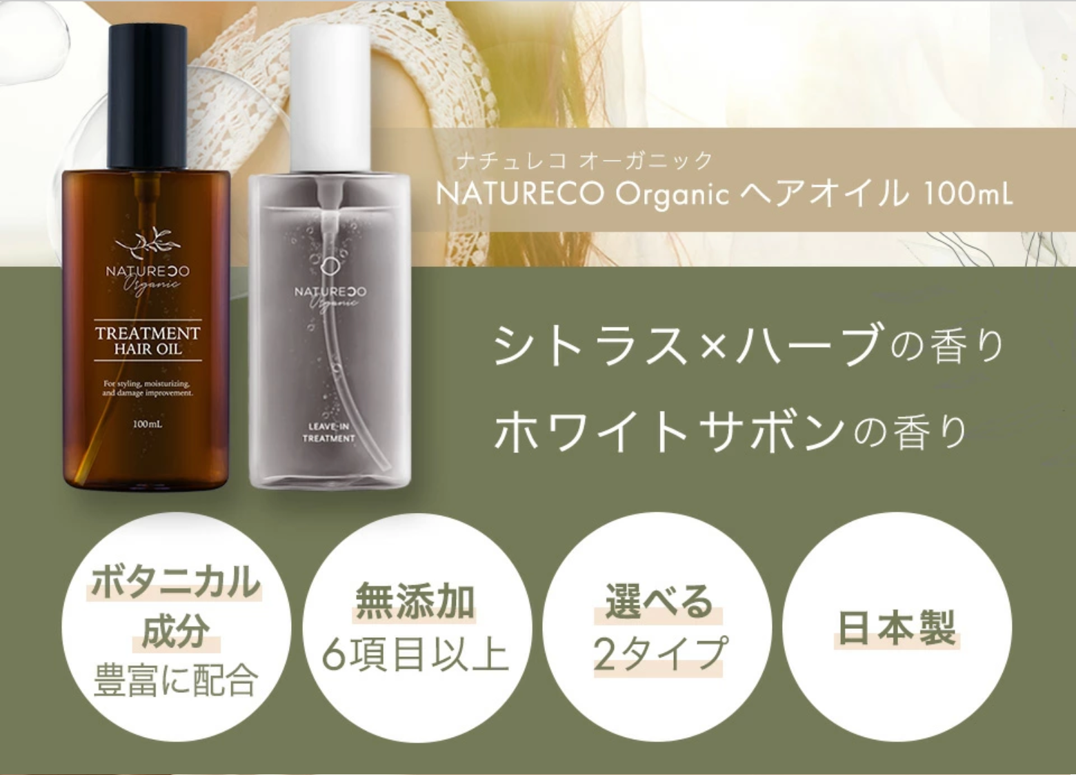 ぜひご自身の髪質に合わせてNATURECO Organicヘアオイルをお試し下さい。