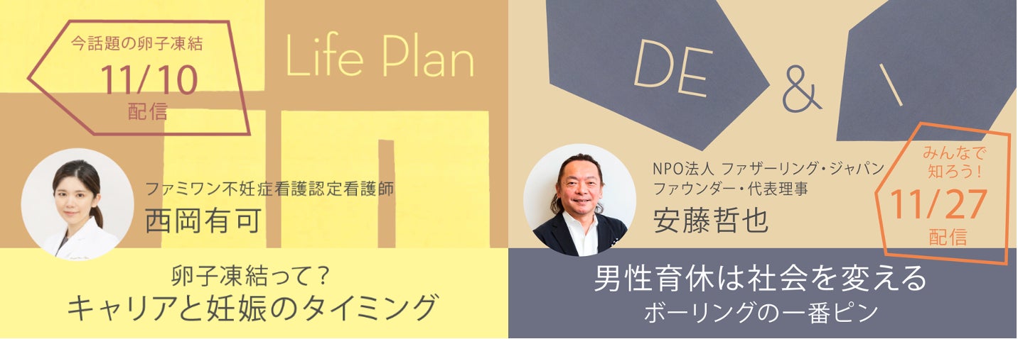 11月のセミナーは10日に株式会社ファミワン西岡有可、27日にNPO法人ファザーリング・ジャパン 安藤哲也氏が登壇しました。西岡のセミナーでは「卵子凍結って?キャリアと妊娠のタイミング」をテーマにキャリアと妊娠のタイミングについて、安藤氏のセミナーでは、「男性育休は社会を変える」をテーマに男性育休のメリットやヒントになる事例についてお話しました。いずれのセミナーもアーカイブ配信を実施しています。