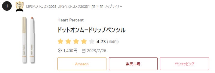 LIPS化粧品ランキングによると、リップライナー部⾨で1位に挙げられるなど、多くのユーザーが推薦し