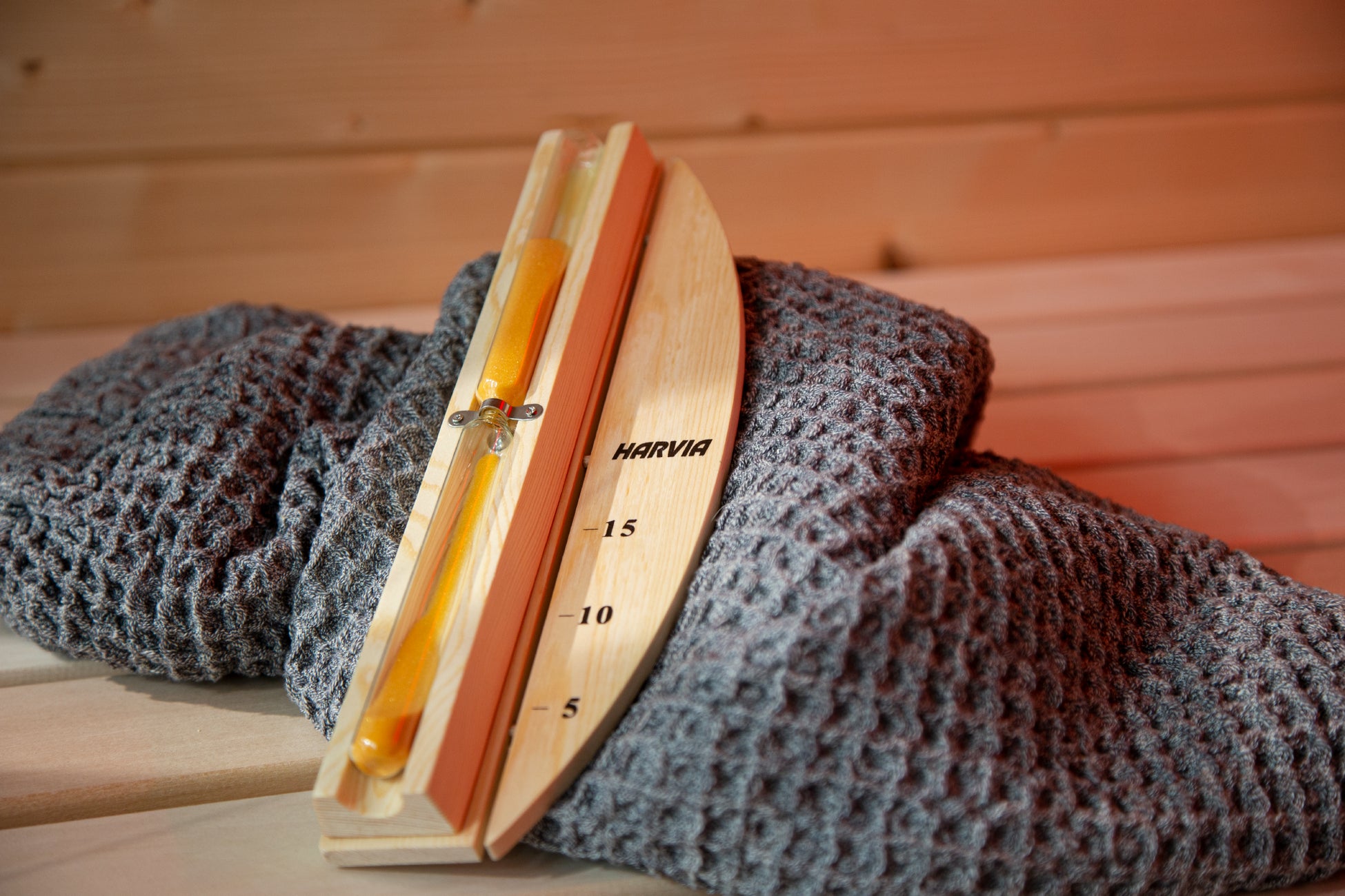 砂時計部分だけをクルっと回せるタイプ。サウナルームの必需品、15分砂時計。