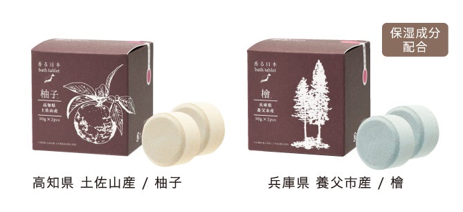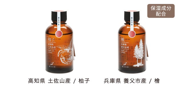 そんな日本に根付いた入浴習慣を香りと共にさらに楽しんでいただきたいと思い、ブランド初のバスアイテムを開発。柚子湯や檜風呂をイメージし、日本のお風呂文化とも馴染みが深く、特に香り立ちが良い「高知県土佐山産 柚子」「兵庫県養父(やぶ)市産 檜」の2種の香りを採用しています。