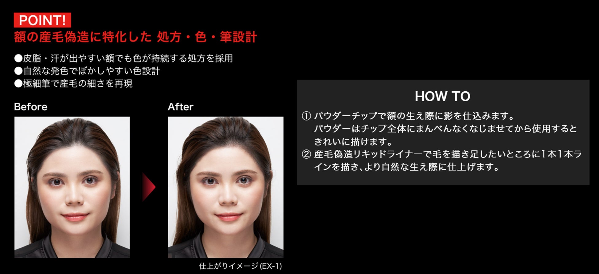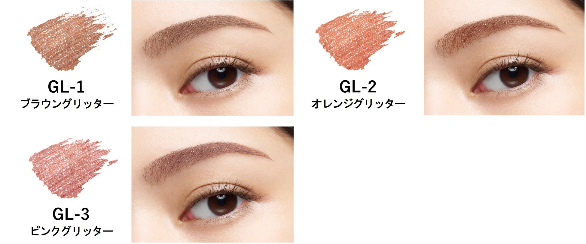 印象的な目もとを演出するグリッタータイプの眉マスカラ、寒色系ダスティーカラーのマスカラ、さらに額の生え際に産毛を偽造し、小顔印象を演出する新商品も同日発売