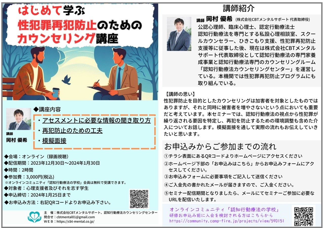 ▼「性加害再犯防止」のテーマで、心理支援者の方に向けた 有料セミナーもございます▼