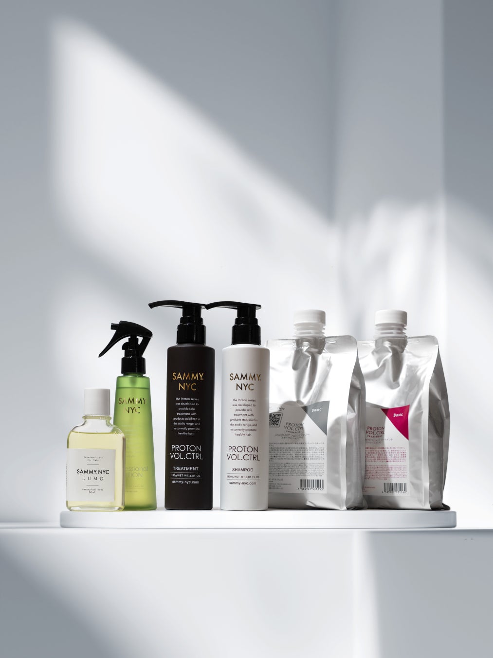 サミー宮本氏の名を冠した「SAMMY. NYC」は、ヘアサロンのプロフェッショナルたちに向けたヘアケアブランド。ブランドコンセプトは「健康で美しい毛髪を再現・創造する」こと。酸熱トリートメントのパイオニアとも称されるSAMMY. NYCが提供する高濃度酸熱トリートメントをはじめ、酸性領域で安定させたプロダクトによって安心・安全に施術を行い、多種多様な毛髪を、健康で美しく再現・創造するために開発されました。