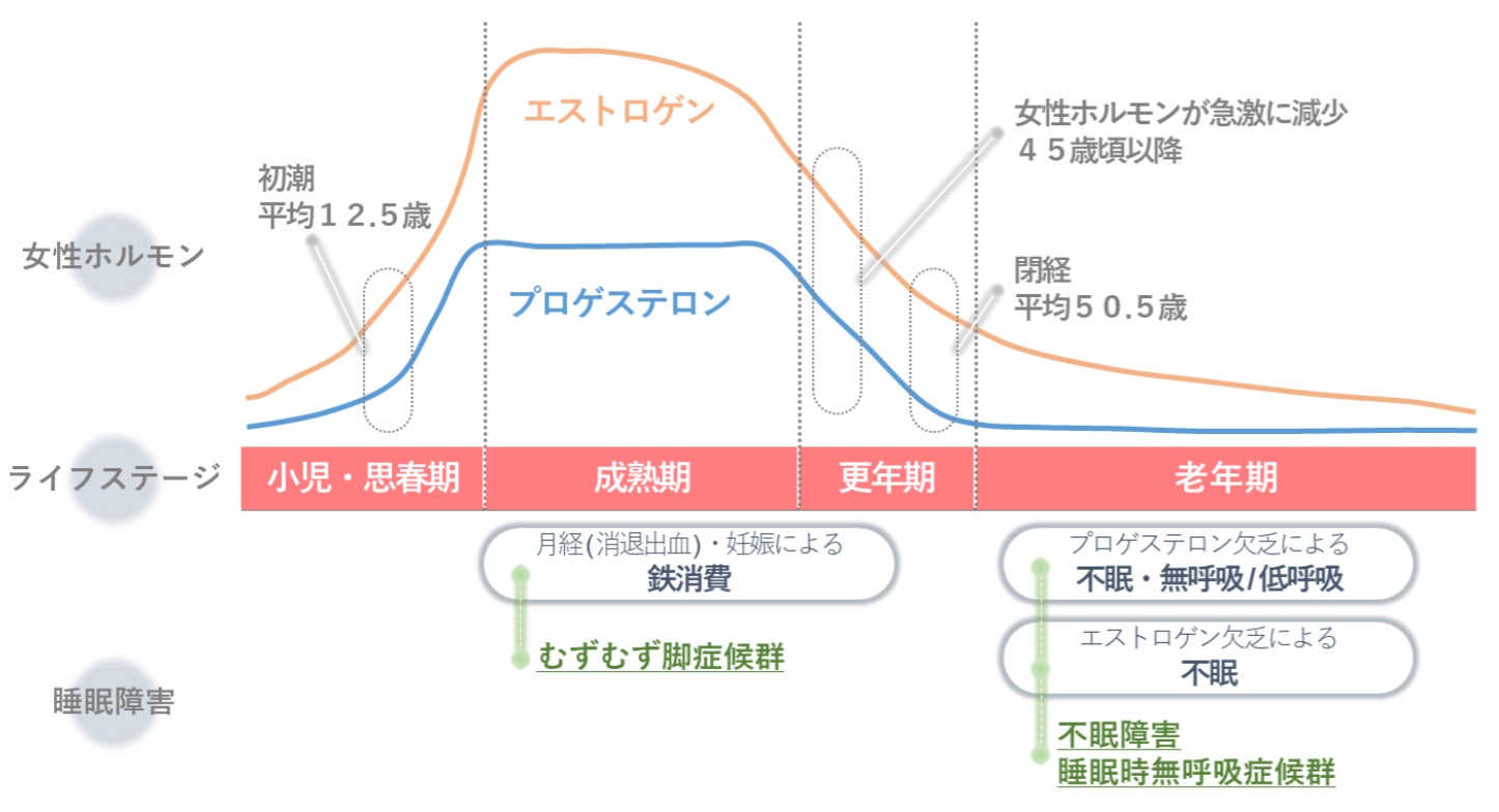 日本人女性は世界で最も睡眠時間が短いというデータが2018年度のOECD Genderdata portalでも知られておりますが、同時に女性は生涯を通して経験する睡眠の問題は男性の約2倍であり、更に女性の睡眠は一生を通して女性ホルモンの影響をうけることが分かっています。