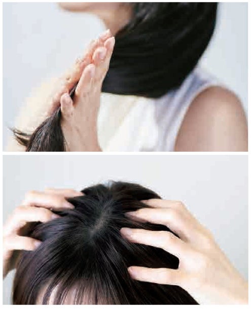 洗髪前の頭皮全体にマッサージをしながらよくなじませ、洗い流します。